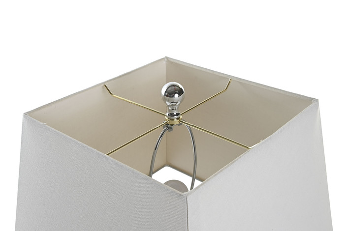 Dimensiones (cm) Longitud 36  |  Fondo 36  |  Altura 70 Peso neto producto (kg) 4,00 Material Nacar  |  Cristal  |  Poliester  |  Lino