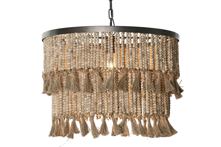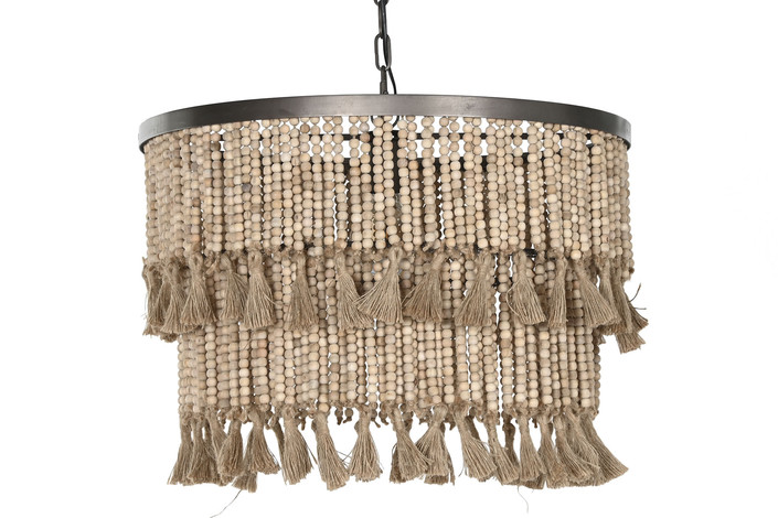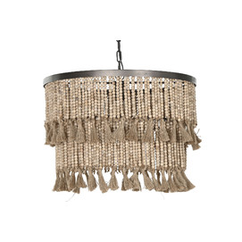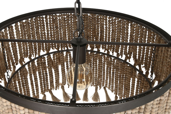 LAMPARA TECHO METAL MADERA 61X61X117 BOLAS NATURAL