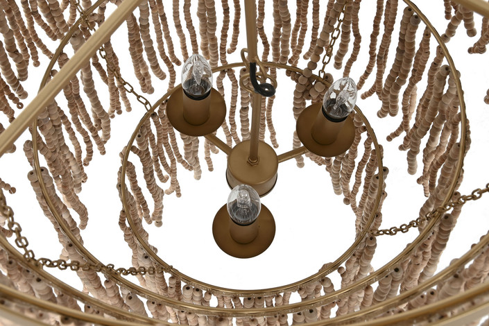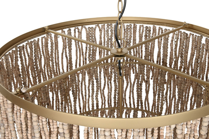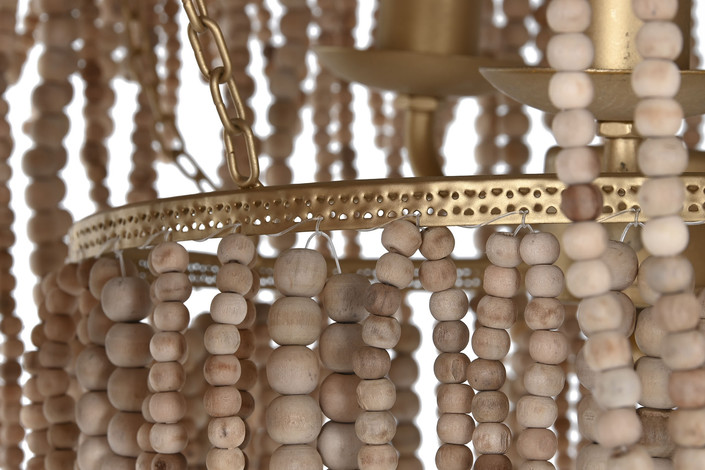 LAMPARA TECHO METAL MADERA 70X70X157 BOLAS NATURAL