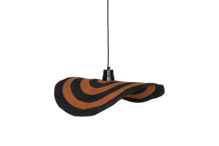 Material: Fibra natural Voltios: 220-240V. Casquillo: E27. Bombilla: 1*40W máx. (no incluida). Longitud cable: 150cm. Rosetón y cable color negro.