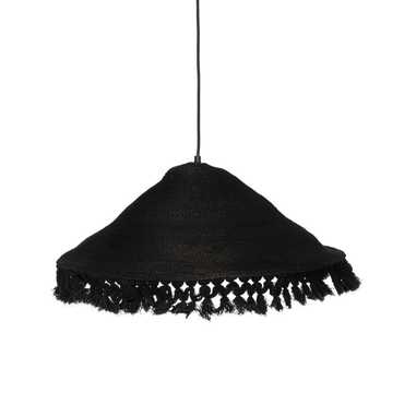 Material: Fibra natural Voltios: 220-240V. Casquillo: E27. Bombilla: 1*40W máx. (no incluida). Longitud cable: 150cm. Rosetón y cable color negro.