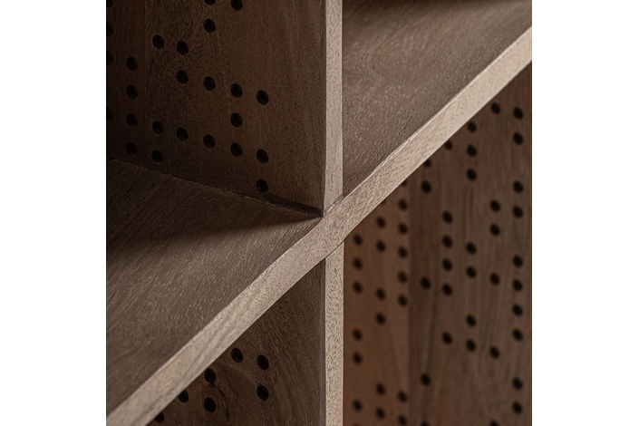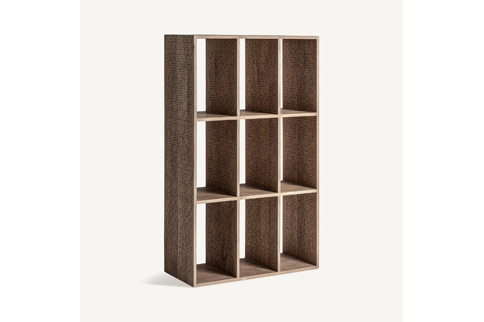 Librería jacquard, de estilo contemporáneo. Fabricado en madera de mango, en color marrón claro.