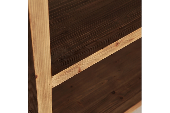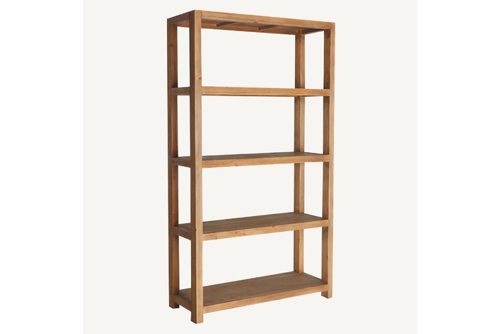 Renueva tu espacio con la Librería Udine de VICAL home. Hecha de madera de olmo reciclado en color marrón, esta pieza de 115x41x206cm es la combinación perfecta de durabilidad y diseño moderno. Aprovecha la amplitud y estructura de la estantería de madera moderna para organizar tus libros, adornos y más, añadiendo un toque rústico-moderno a tu hogar.