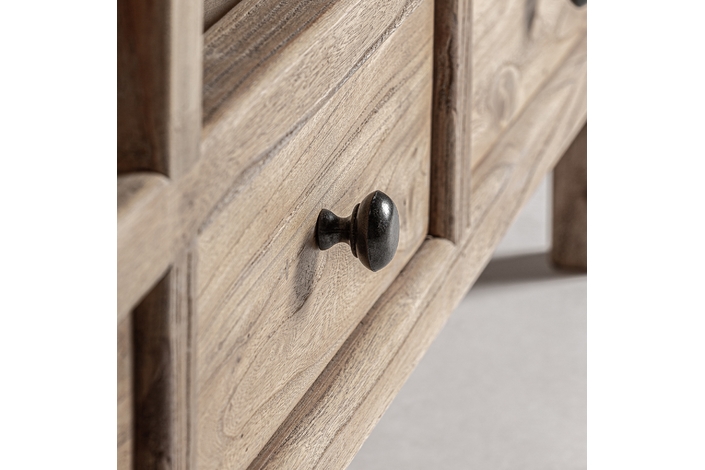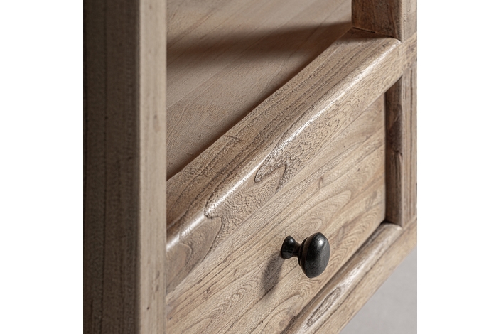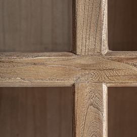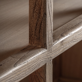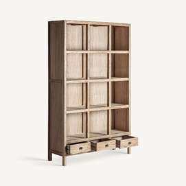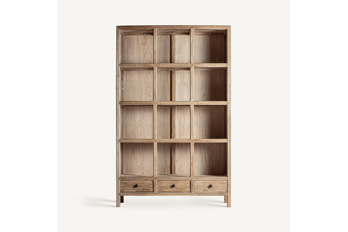 Libreria modular brecey, de estilo colonial. Fabricado en madera de olmo reciclado, en color marrón claro.
