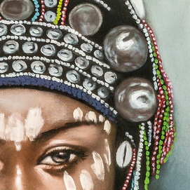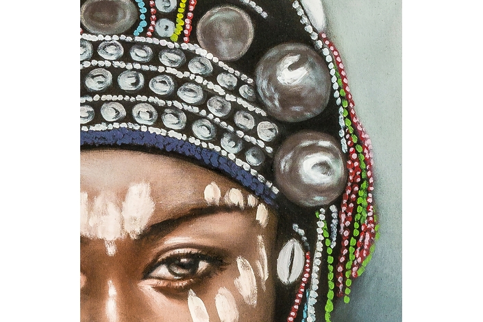 Lienzo akram, en color multicolor artesanal, de estilo étnico. Fabricado en lienzo, combinado con madera de pino.