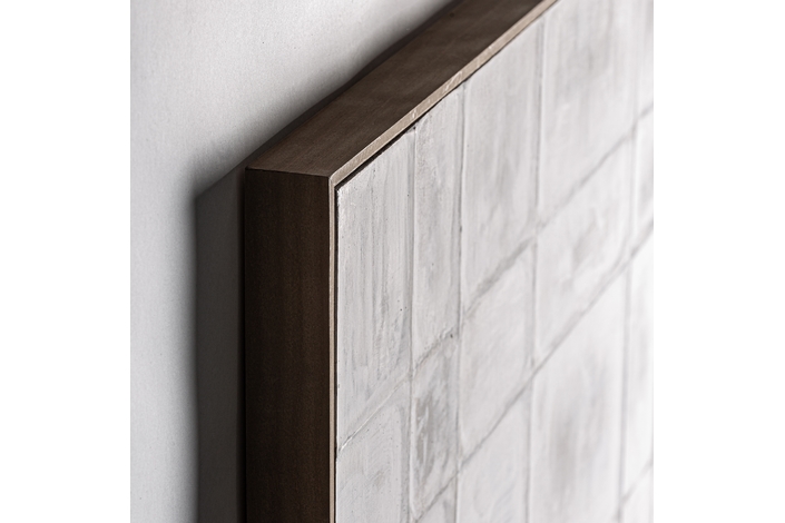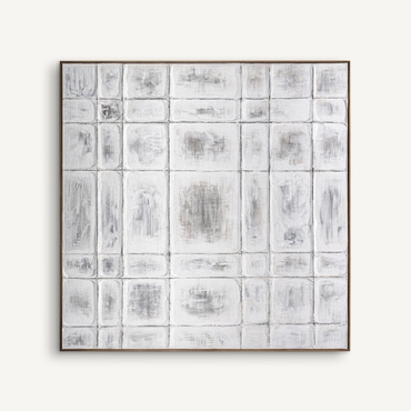 Lienzo blas, de estilo contemporáneo. Fabricado en lienzo, en color tonos claros artesanal, combinado con madera de pino, en color marrón.