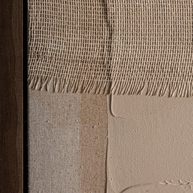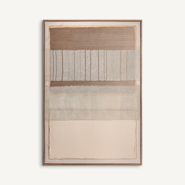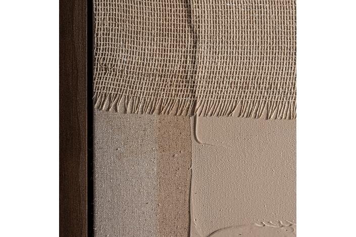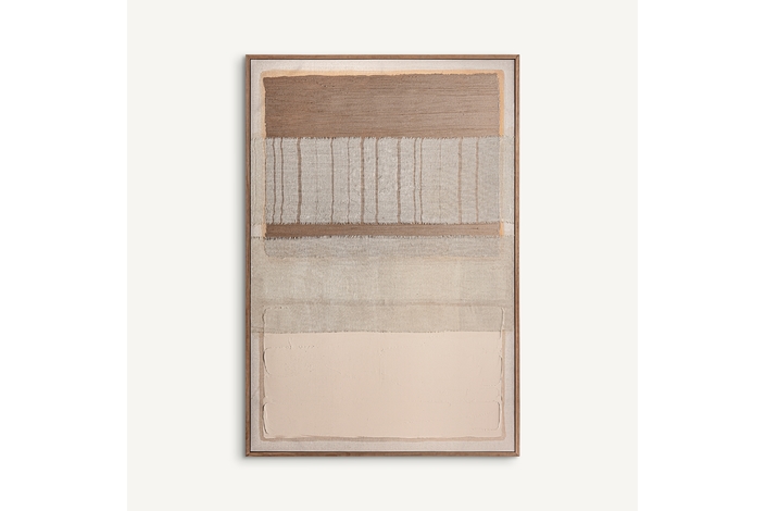 Lienzo dalmar, en color tonos en marrón artesanal, de estilo contemporáneo. Fabricado en lienzo, combinado con madera de pino.