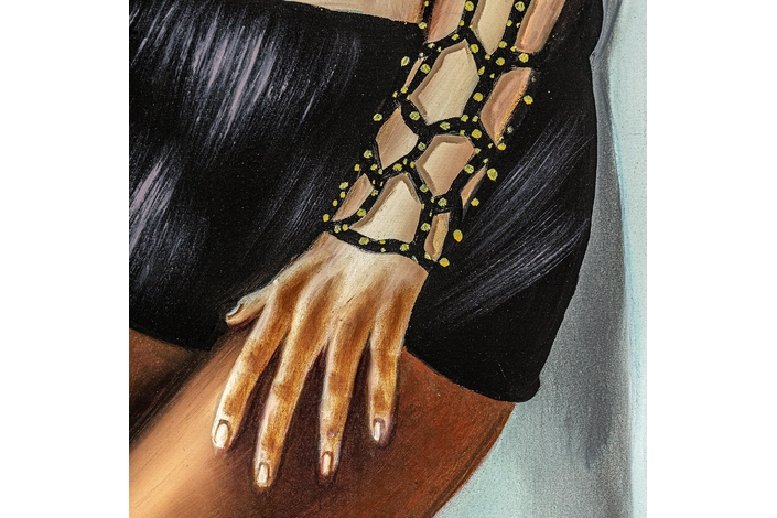 Lienzo rectangular hatsu, en color blanco/negro/marfil artesanal, de estilo contemporáneo. Fabricado en lienzo.