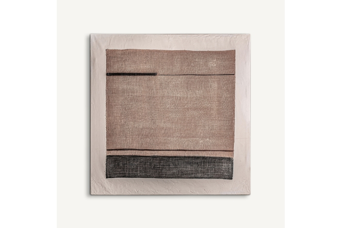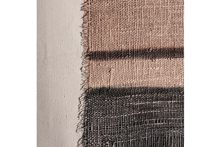 El lienzo Hernan, en tonos marrón y madera tropical, presenta una estética contemporánea de gran sobriedad. Una creación de VICAL que aporta equilibrio y textura.
