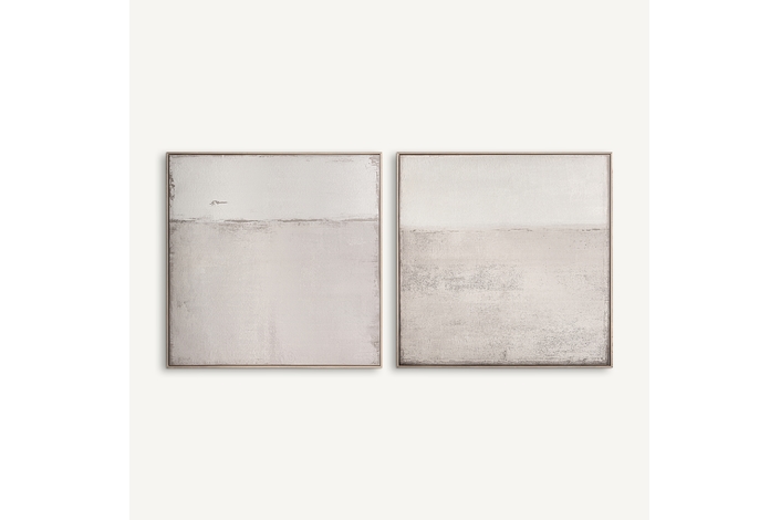 Lienzo j/2 cyrus, en color tonos claros artesanal, de estilo contemporáneo. Fabricado en lienzo, combinado con madera de pino.