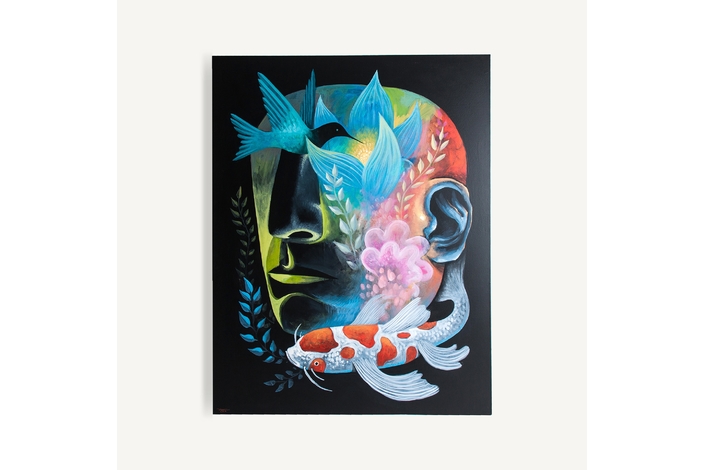 Lienzo rectangular nael, en color multicolor artesanal, de estilo contemporáneo. Fabricado en lienzo, combinado con madera de pino.