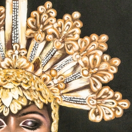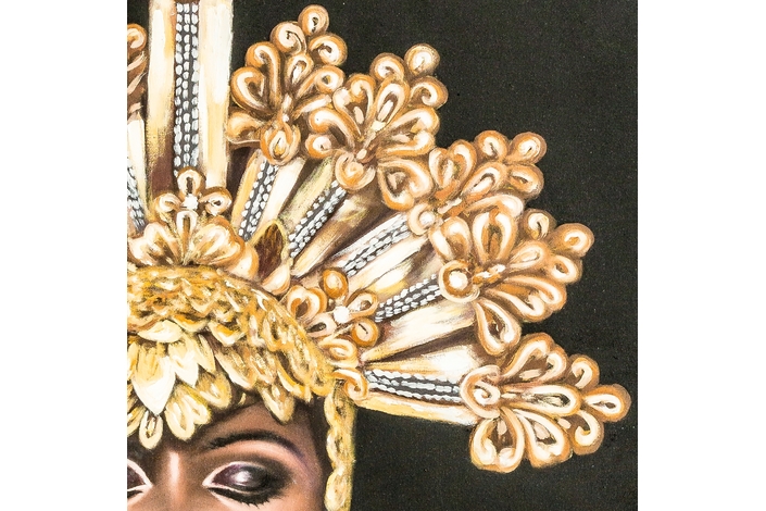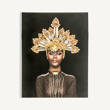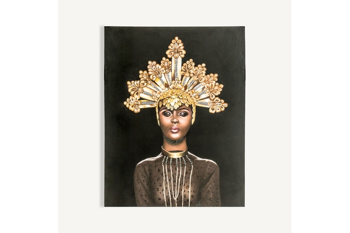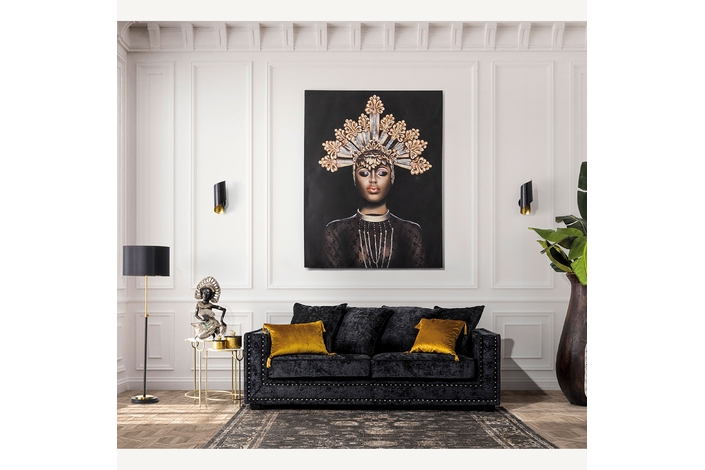 Lienzo niurka, en color negro/oro artesanal, de estilo oriental. Fabricado en lienzo, combinado con madera de pino.