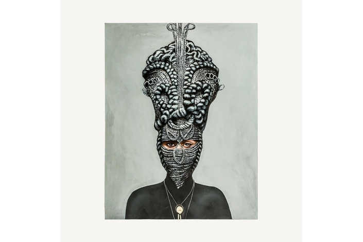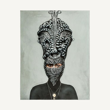 Lienzo vanya, en color blanco/negro/marfil artesanal, de estilo oriental. Fabricado en lienzo, combinado con madera de pino.