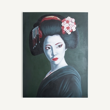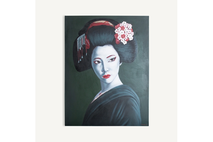 Lienzo rectangular zoe, en color negro/plata/rojo artesanal, de estilo contemporáneo. Fabricado en lienzo.