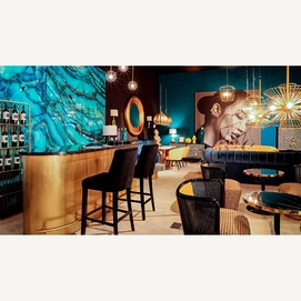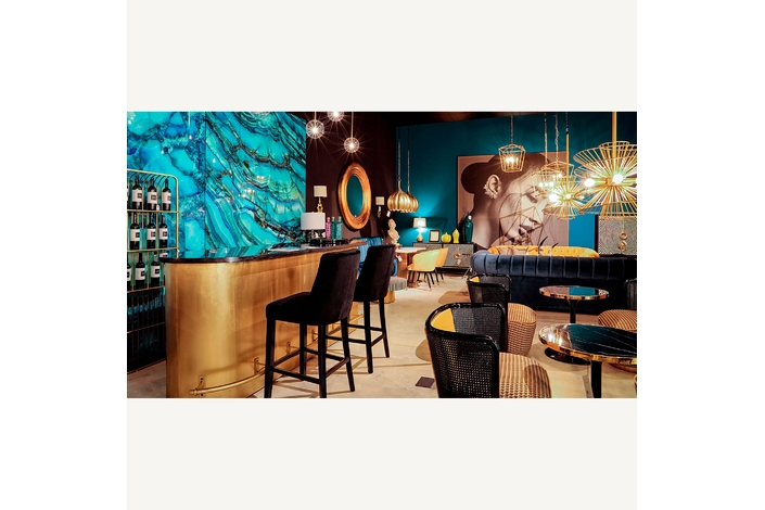 Lámina nauru, en color turquesa impreso, de estilo art deco. Fabricado en metacrilato.