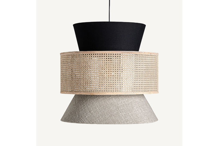 Lámpara de colgar bethale, en color blanco/negro, de estilo boho. Fabricado en ratán, combinado con algodón y poliéster.