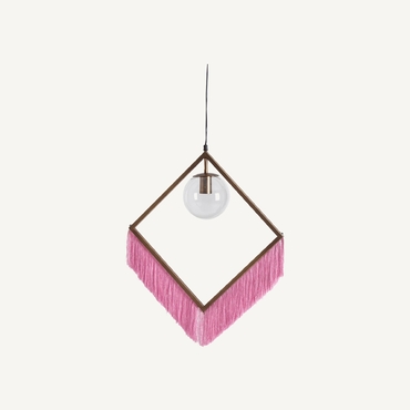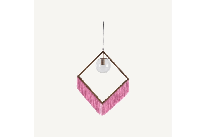 Lámpara de colgar bulevard, en color rosa, de estilo shabby chic. Fabricado en latón, combinado con cristal y poliéster.