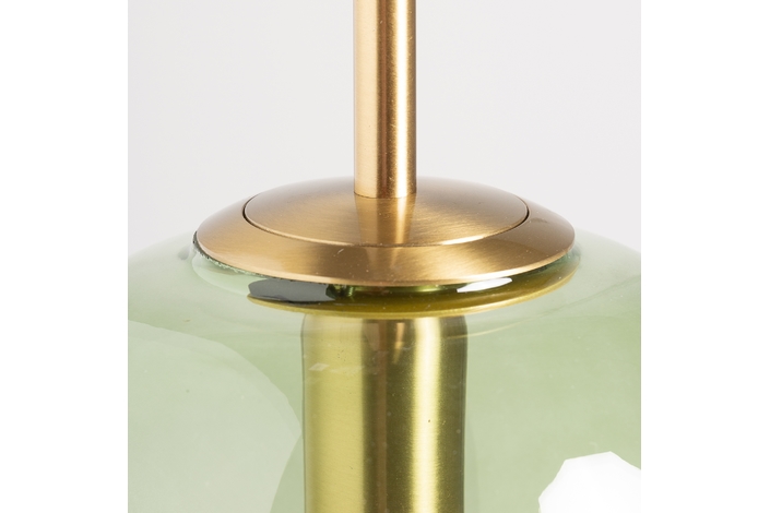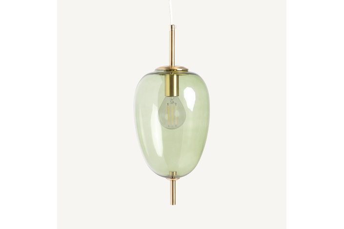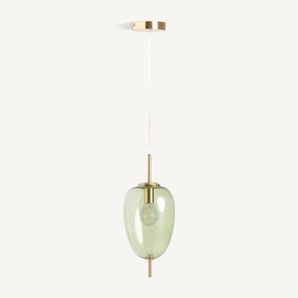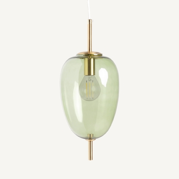 Lámpara de colgar micah, en color verde/oro, de estilo art deco. Fabricado en hierro, combinado con cristal.