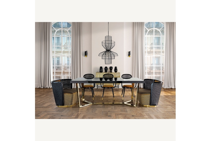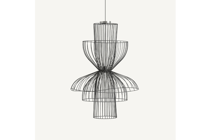 Lámpara de colgar sealza, en color negro, de estilo art deco. Fabricado en hierro.