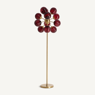 Lámpara de pie Alaia de estilo art deco, fabricado en cristal en color burdeos, combinado con hierro en color oro. Producto desmontable.
