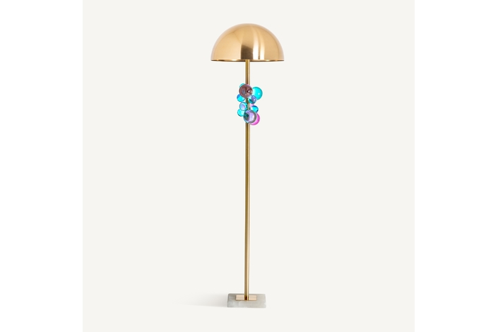 Para impregnar cualquier mesa de estilo ha llegado la lámpara de pie INCH. De estilo art deco multicolor que combina el vidrio con el hierro. Esta lámpara guarda la esencia de lo clásico junto al infraestructura circular que hace un guiño a la sofisticación.