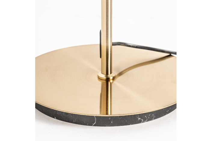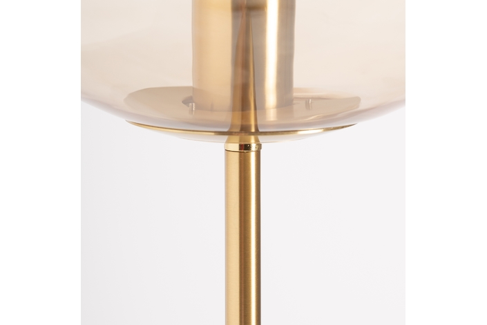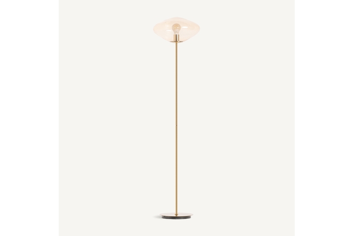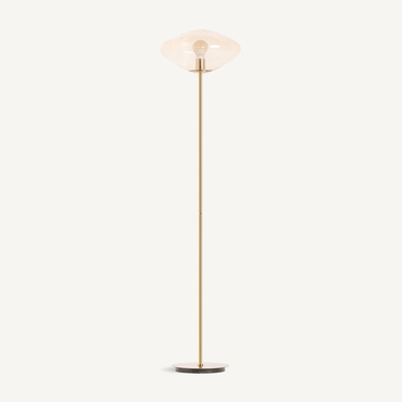 Lámpara de pie mel, en color oro, de estilo art deco. Fabricado en hierro, combinado con cristal. Producto desmontable.