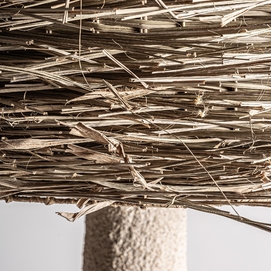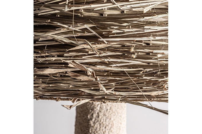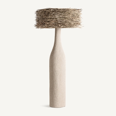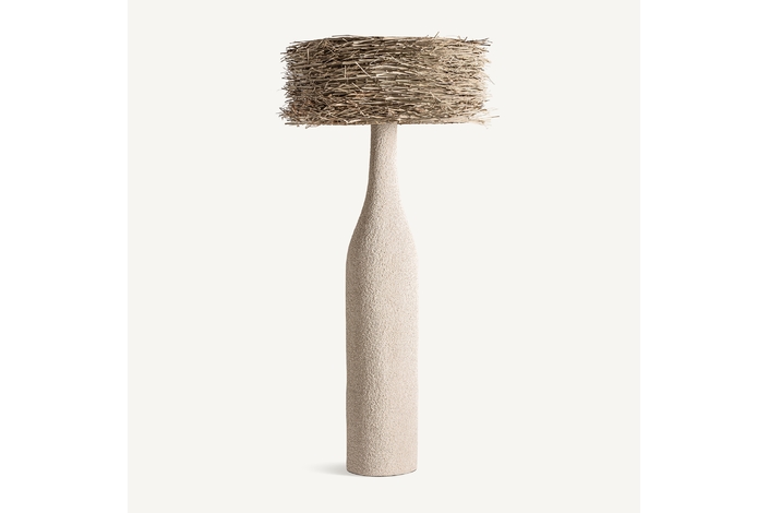 Lámpara de pie nyland, de estilo rústico. Fabricado en resina, en color crema rugoso, combinado con hierba marina, en color marrón. Producto desmontable.