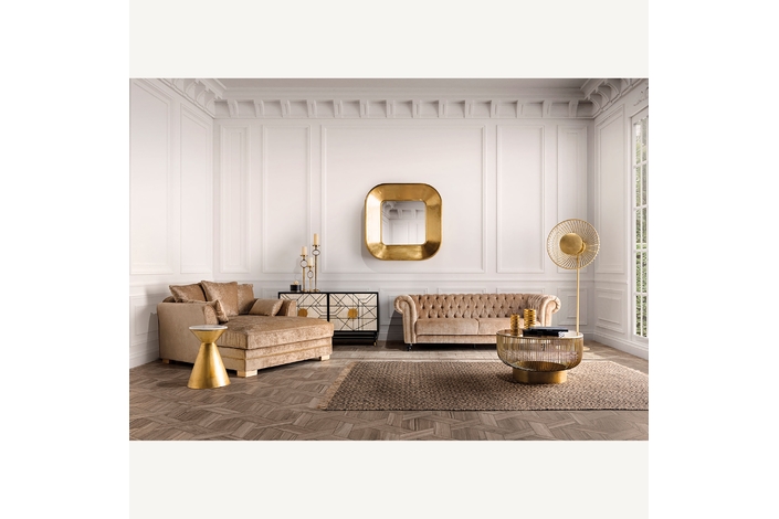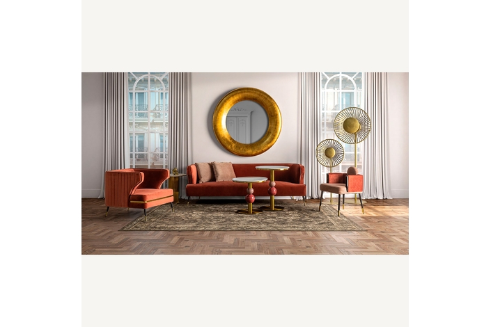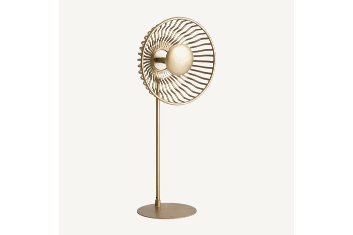 Lámpara de pie redonda zug, en color oro, de estilo art deco. Fabricado en hierro. Producto desmontable.
