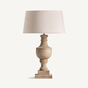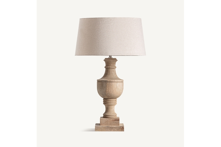 Lámpara de sobremesa Bamberg de estilo clásico, fabricado en madera de mango en color marrón claro, combinado con algodón en color beige. Producto desmontable.