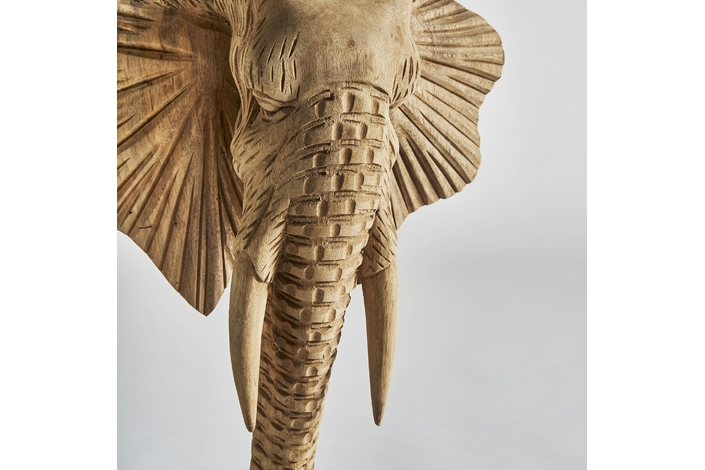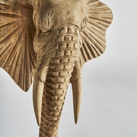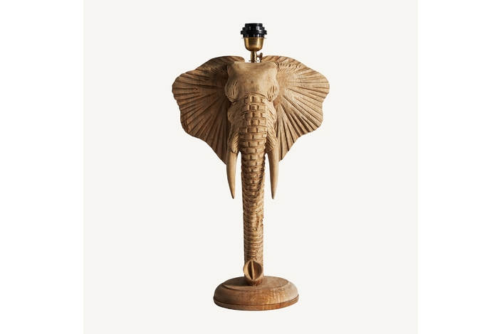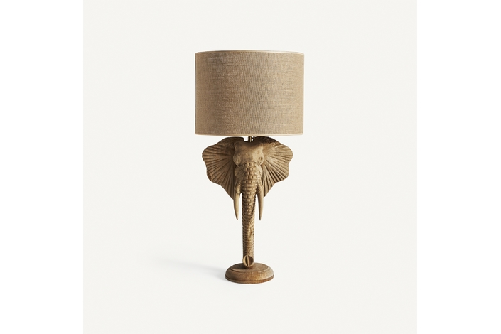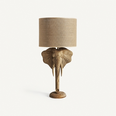 Lámpara de Sobremesa Elefante, en color Natural Envejecido, de Estilo Étnico.Fabricado en Madera de Teka, Combinado Con Yute.