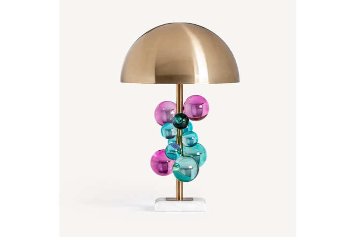 Para impregnar cualquier mesa de estilo ha llegado la lámpara de sobremesa INCH. De estilo art deco multicolor que combina el vidrio con el hierro. Esta lámpara guarda la esencia de lo clásico junto al infraestructura circular que hace un guiño a la sofisticación.