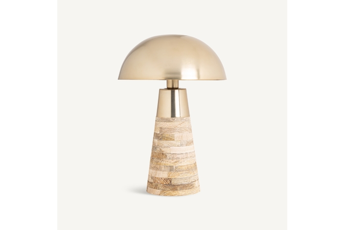 Lámpara de sobremesa kelly, en color crema/oro, de estilo art deco. Fabricado en latón, combinado con madera de mango. Producto desmontable.