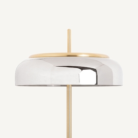 Lámpara de sobremesa malih, en color gris/oro, de estilo art deco. Fabricado en hierro, combinado con cristal.
