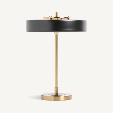 Lámpara de sobremesa maoz, en color negro/oro, de estilo art deco. Fabricado en hierro, combinado con acrílico. Producto desmontable.
