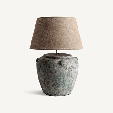 Lámpara de sobremesa vigdis, en color tonos en verde envejecido, de estilo nórdico. Fabricado en terracota, combinado con yute. Compatible con: 26961,35115.