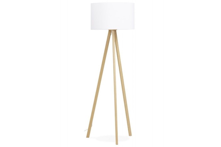 Lámpara JENSEN, pie salón, madera, pantalla blanca