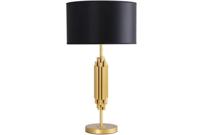 Lámpara de mesa, diseño, metal dorado, pantalla negra