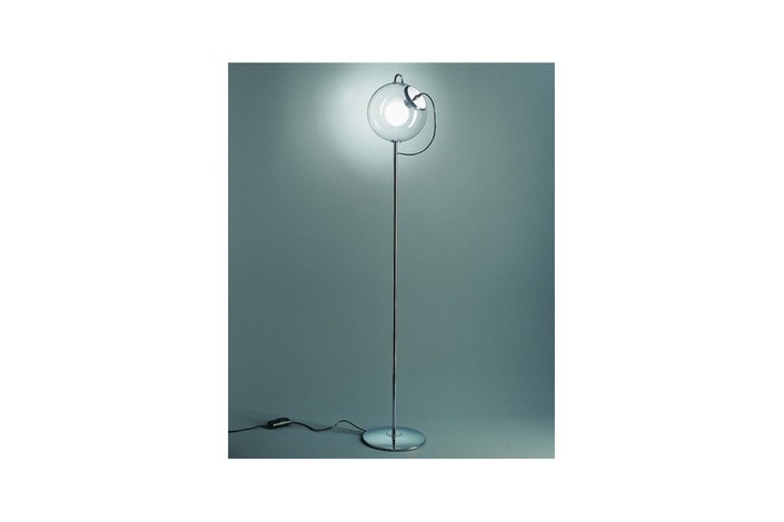 Lámpara de pie, diseño, cromada, tulipa cristal