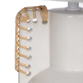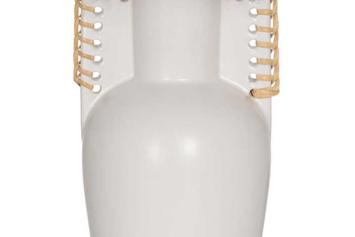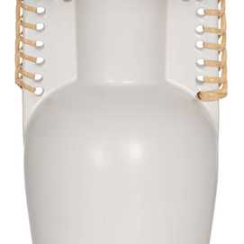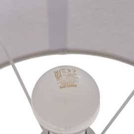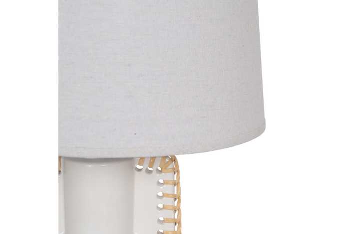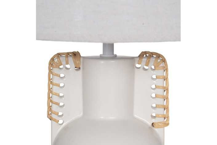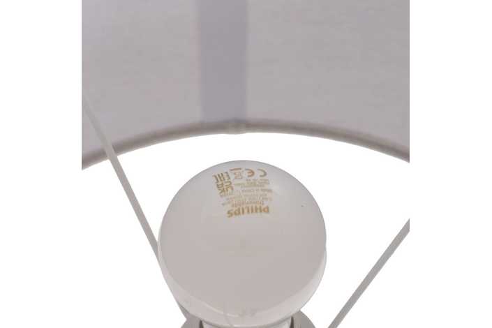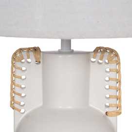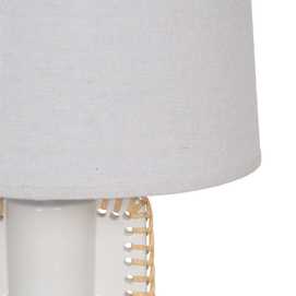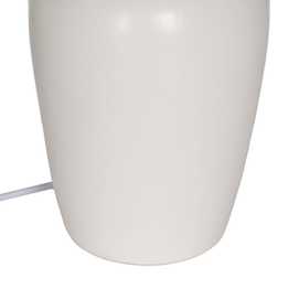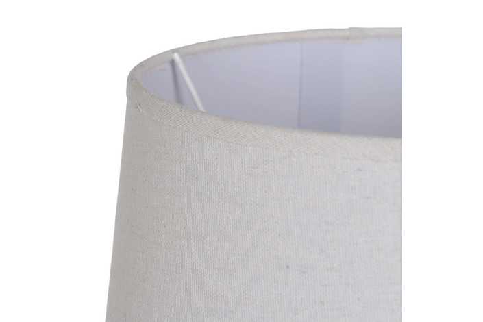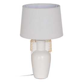 Base de cerámica, medidas 14x12,8x25cm. Tulipa de tejido, PVC y metal, medidas 24x28x19,5cm. Voltios: 220-240V. Casquillo: E27. Bombilla: 1*40W (no incluida). Longitud cable: 130cm.