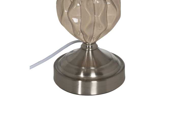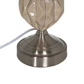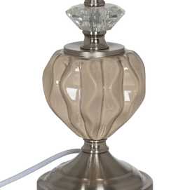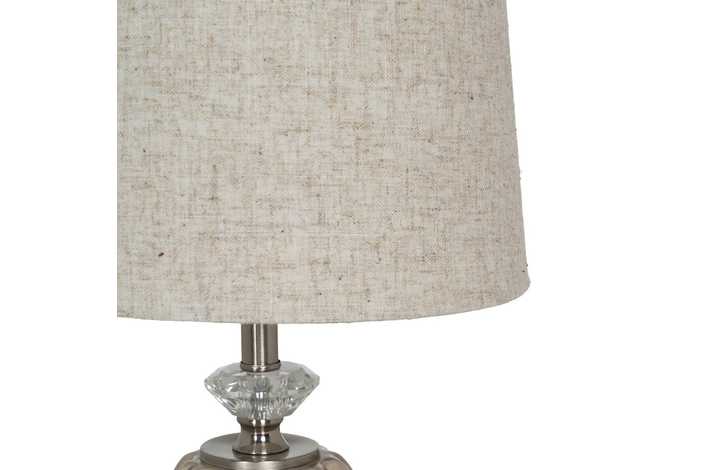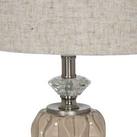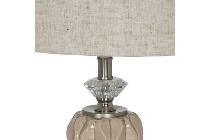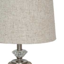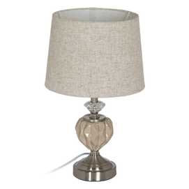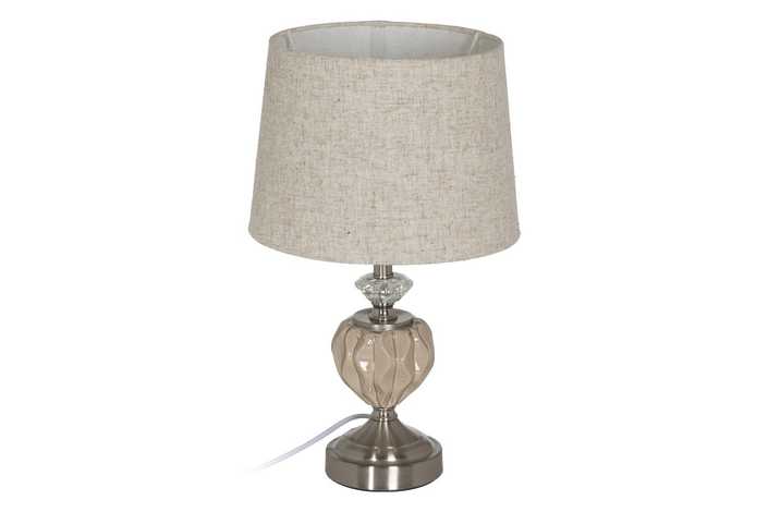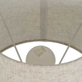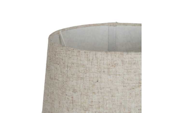 Material base: cerámica, cristal, metal. Material tulipa: 80% lino, 20% poliéster. Medida tulipa: 23x26x20cm. Medida base: 12x12x24cm. Voltaje: 220V. Casquillo: E27. Bombilla: 1*10W máx. led (no incluida). Longitud del cable: 180cm.