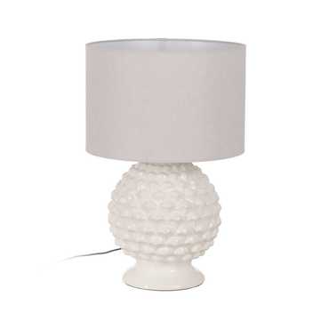 Base de cerámica, medidas 27x27x29cm. Pantalla de tejido (lino), medidas 38x38x25cm. Voltaje: 220V. Casquillo: E27. Bombillas: 1*60W máx (no incluida). Longitud cable: 120cm.