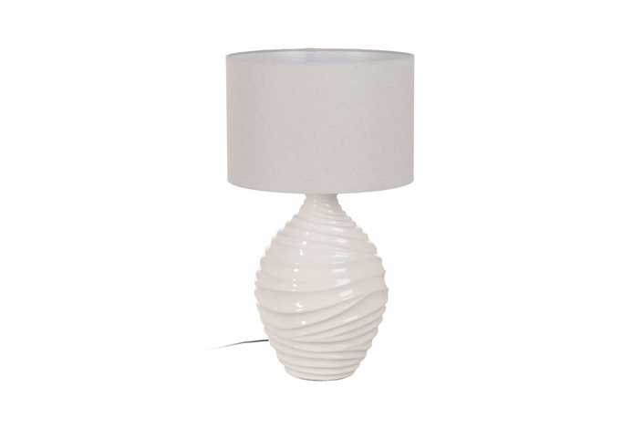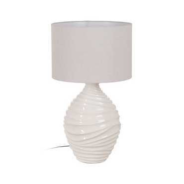 Base de cerámica, medidas 27,5x27,5x40cm. Pantalla de tejido (lino), medidas 38x38x25cm. Voltaje: 220V. Casquillo: E27. Bombillas: 1*60W máx (no incluida). Longitud cable: 120cm.