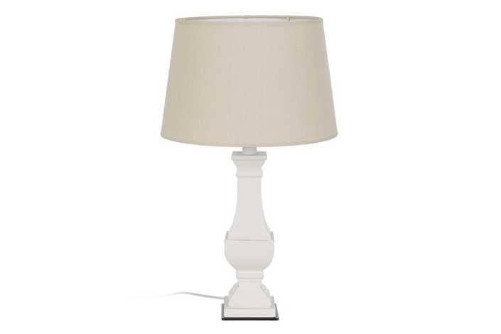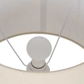 Material base: DM Medida base: 12x12x46cm. Material tulipa: Algodón, lino. Medida tulipa: 30x37x24cm. Cable blanco, medida: 200cm. Voltaje: 220-240V. Casquillo: E27. Bombilla: Máx. 40W (no incluída).
