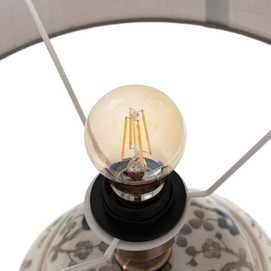 Material: PORCELANA Y POLIÉSTER. Medidas de la tulipa:30*40*27cm. Voltios: 220-240V. Casquillo: E27. Bombilla: 1*60W (no incluida). Cable color negro. Longitud del cable:2.50m