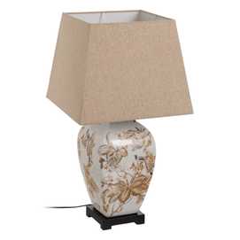 Material: PORCELANA Y POLIÉSTER. Medidas de la tulipa:36*40*25cm. Voltios: 220-240V. Casquillo: E27. Bombilla: 1*60W (no incluida). Cable color negro. Longitud del cable:2.50m