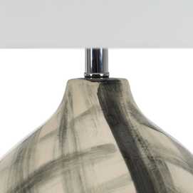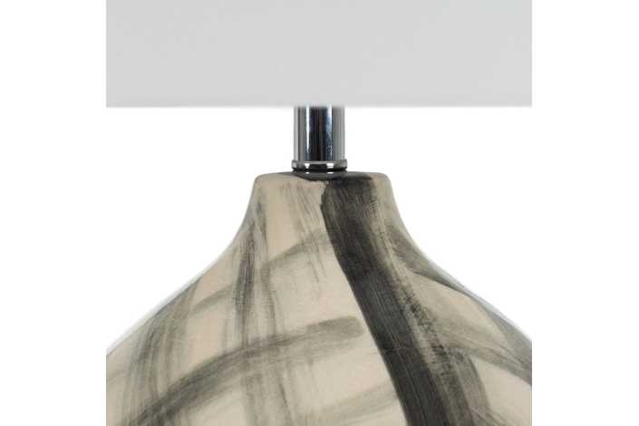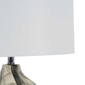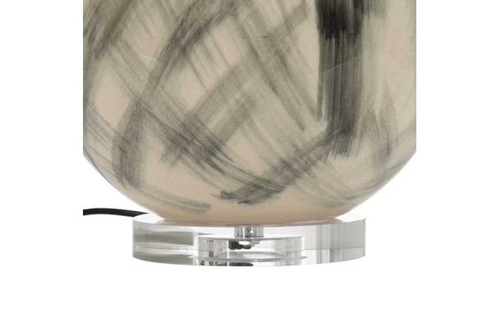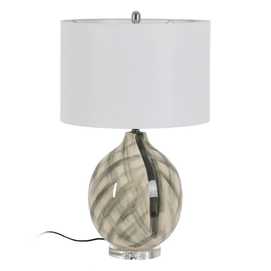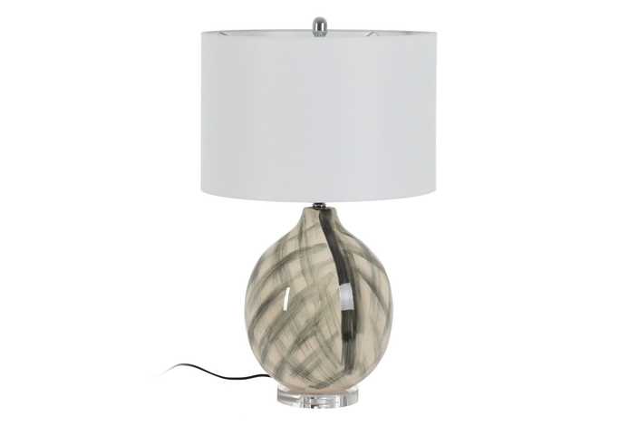 Material base: metal-cerámica-cristal Material tulipa: Lino Voltaje: 220V - 240V Casquillo: E27. Cable color negro. Bombilla: 1 x60W (no incluida). Medidas tulipa: diámetro superior:45cm diámetro superior:45cm. Altura:30cm. Altura base:50cm Altura lámpara completa:73cm.