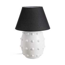 Material: cerámica Medida base: 36x36x49cm. Medida tulipa: 28 x 50 x 32(altura) cm. Voltaje: 220-240v Casquillo: E 27 Bombilla: 1x60w máx (no incluida) Largo cable: 120cm. negro