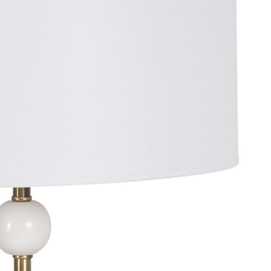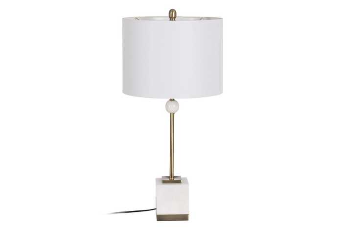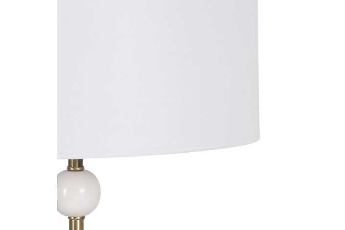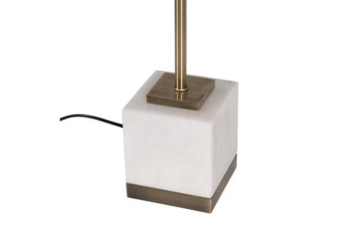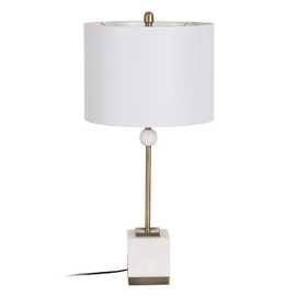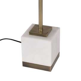 Material cuerpo: metal-mármol. Altura cuerpo:51cm Material tulipa: Lino. Medidas tulipa: Diámetro superior:38,5cm Diámetro inferior:38,5cm Altura: 28cm. Base:13x13cm Voltaje: 220V - 240V Casquillo: E27. Largo cable: cm. Cable color negro. Bombilla: 1 x60W (no incluida).