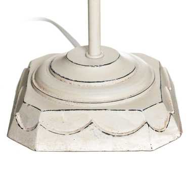 Material base: Resina. Medida base: 17x13x44cm. Material tulipa: Algodón, lino. Medida tulipa: 30x37x24cm. Cable blanco, medida: 200cm. Voltaje: 220-240V. Casquillo: E27. Bombilla: Máx. 40W (no incluída).