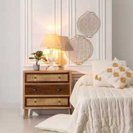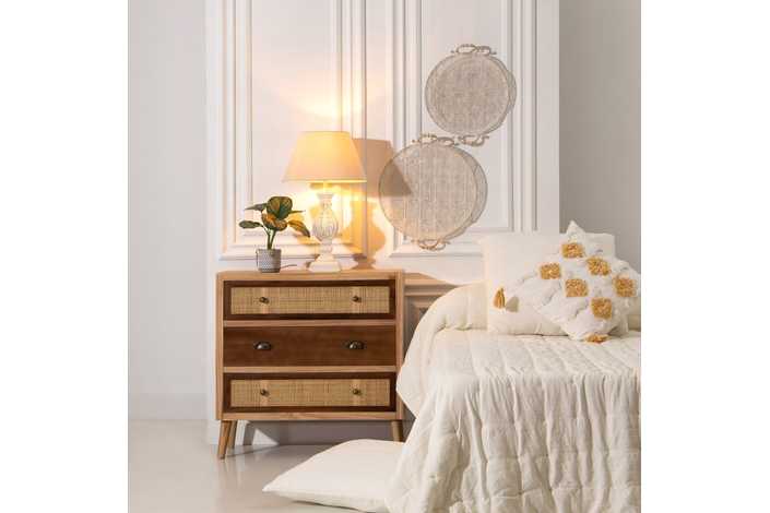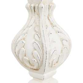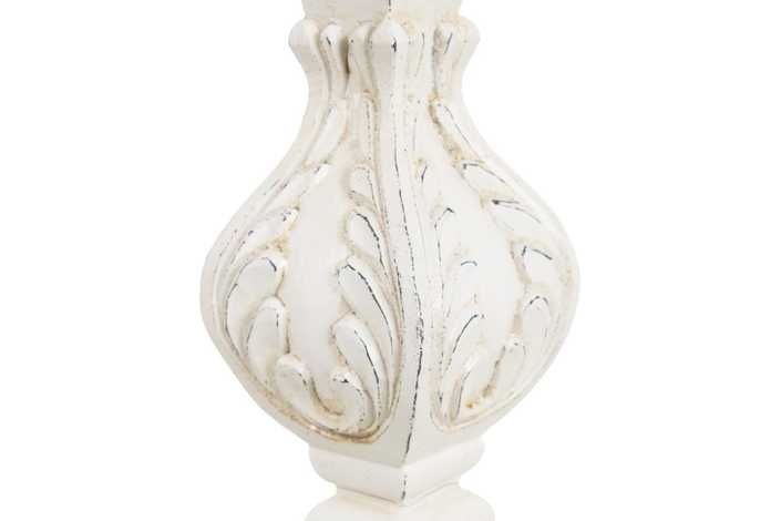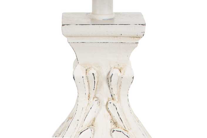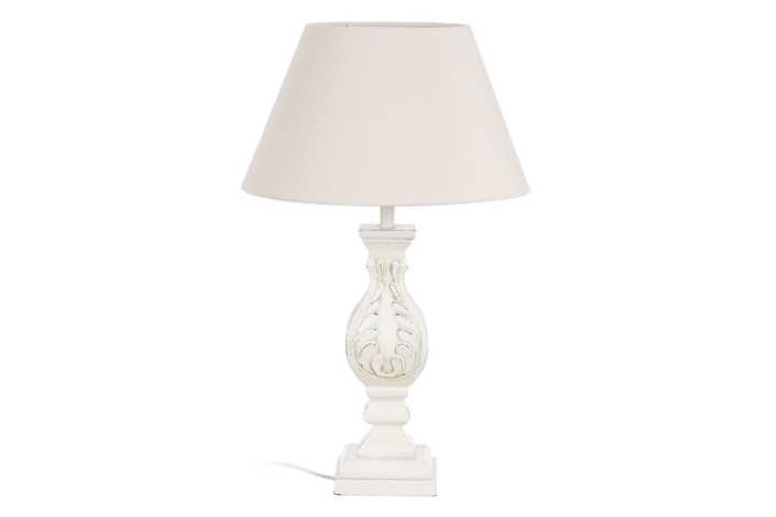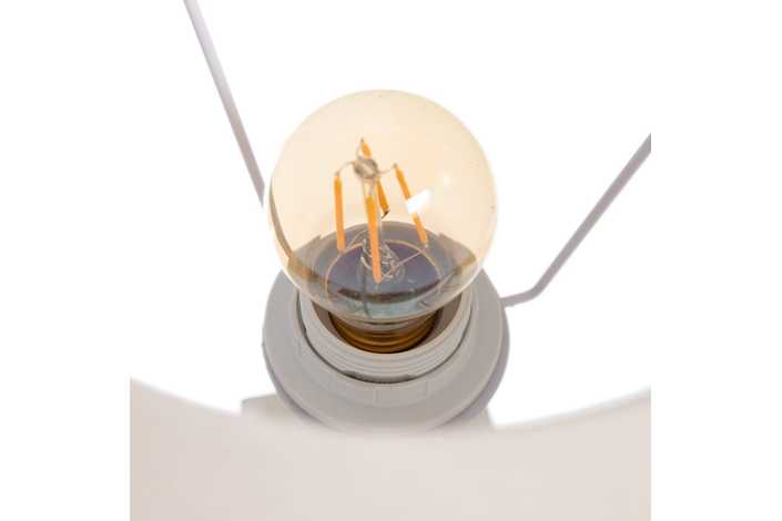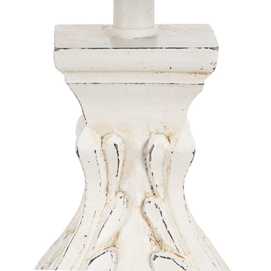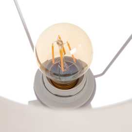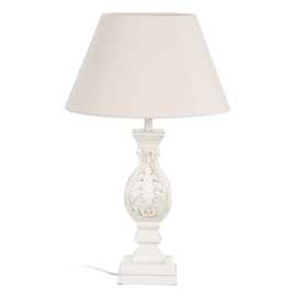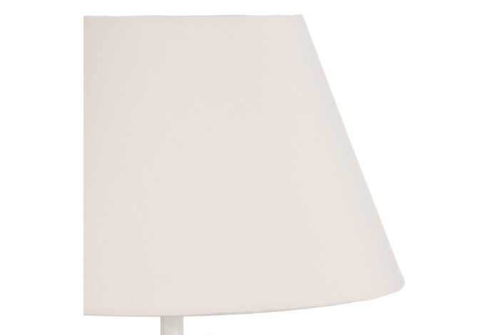 Material base: Resina. Medida base: 12.5x12.5x44.5cm. Material tulipa: Algodón, lino. Medida tulipa: 20x35x20cm. Cable blanco, medida: 200cm. Voltaje: 220-240V. Casquillo: E27. Bombilla: Máx. 40W (no incluída).